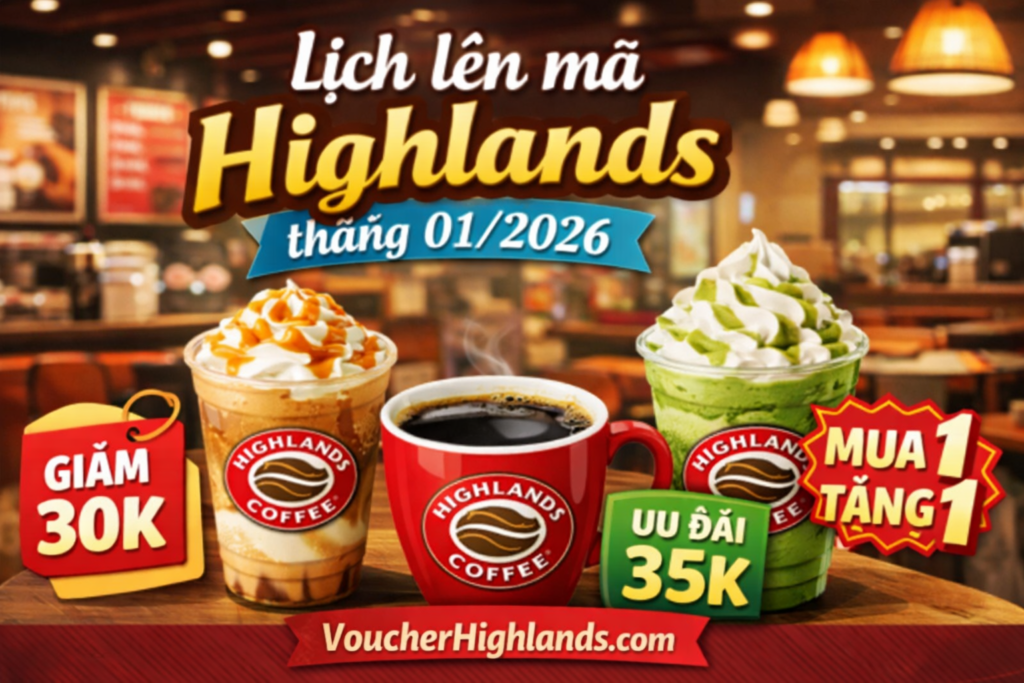 Bước sang tháng 01/2026, không khí năm mới rộn ràng hơn bao giờ hết và Highlands Coffee cũng sẵn sàng “khai xuân” bằng lịch lên voucher siêu hấp dẫn dành cho các tín đồ cà phê. Từ ưu đãi giảm 30K – 35K cho đến chương trình Mua 1 Tặng 1 quen thuộc, mỗi ngày trong tháng đều là một cơ hội để bạn khởi đầu năm mới thật tiết kiệm nhưng vẫn trọn vẹn hương vị yêu thích. Cùng lưu lại Lịch lên voucher Highlands tháng 01/2026 để không bỏ lỡ bất kỳ ưu đãi ngon – hời nào và bắt đầu năm mới thật “đã” bên những ly cà phê ấm áp nhé!