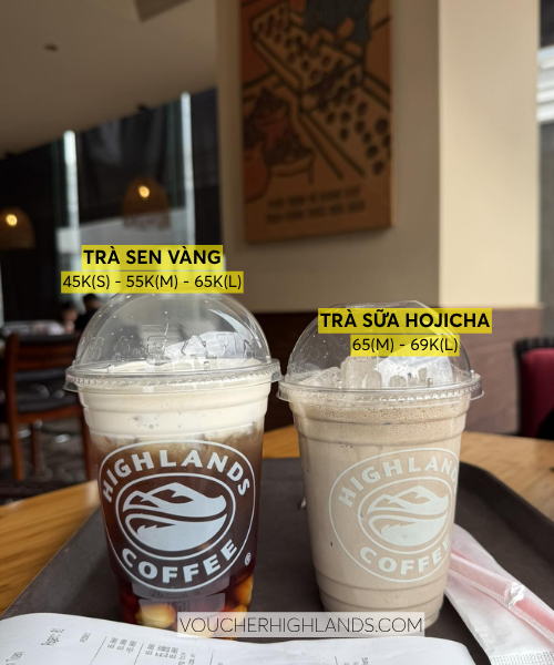 Trà Sữa Highlands: 65.000đ (M) | 69.000đ (L). Hiện Highlands có các dòng Trà sữa Hongkong, Đài Loan, Trà Xanh, Hojicha.